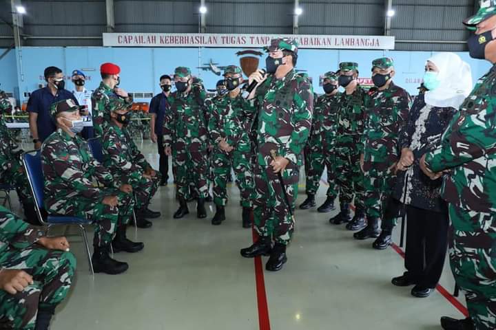 Jakarta- Saat ini kita telah memasuki jadwal vaksinasi Covid-19 tahap 2 kepada Prajurit TNI. Vaksinasi telah dimulai di beberapa tempat sejak tanggal 1 Maret 2021. Diharapkan pada akhir April 2021 seluruh prajurit TNI sudah memperoleh vaksinasi,” kata Panglima TNI Marsekal TNI Hadi Tjahjanto, S.I.P. saat meninjau pelaksanaan Vaksinasi Covid-19 Nasional bagi Prajurit TNI, bertempat di Skuadron Udara 32, Malang, Jawa Timur, Jumat (12/3/2021).