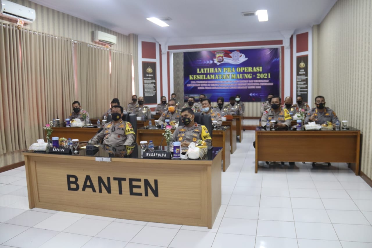 Dalam sambutannya, Kapolda Banten Irjen Pol Dr Rudy Heriyanto Adi Nugroho, S.H., M.H., M.B.A mengatakan bahwa latihan Pra Operasi Keselamatan Maung merupakan bentuk upaya melatih kemampuan personel.
