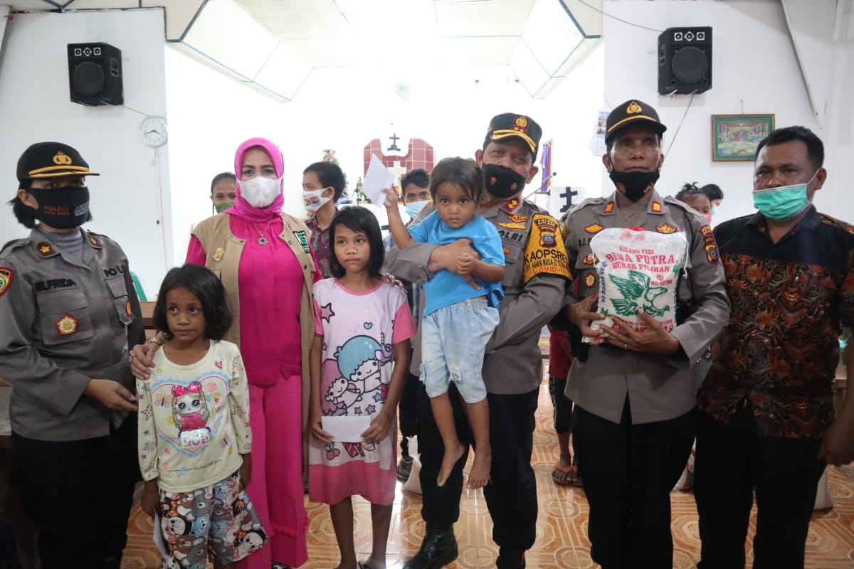 Batu Bara, Kapolres Batu Bara AKBP H Ikhwan Lubis SH MH didampingi Ketua Bhayangkari Cab. Batu Bara Ny DR Hj Henny Ikhwan Spd MPd menggelar bakti sosial kepada anak yatim di Gereja HKBP Parsaoran Pando Desa Gunung Rante Kec. Talawi Kab. Batu Bara, Jumat sore (21/5).