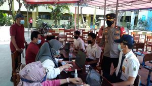 Kabarsimalungun.com. Cibodas Baru, Kotamadya Tangerang, Banten, IC – Dalam rangka upaya mendukung program pemerintah meminimalisir Lonjakan Covid-19 dan percepatan Herd Imunity, Kapolsek Jatiuwung Polres Metro Tangerang Kota Lakukan pemantauan jalannya kegiatan pelaksanaan Vaksinasi untuk pelajar tingkat SMP, Kamis (12/08/2021) jam 07:00wib.