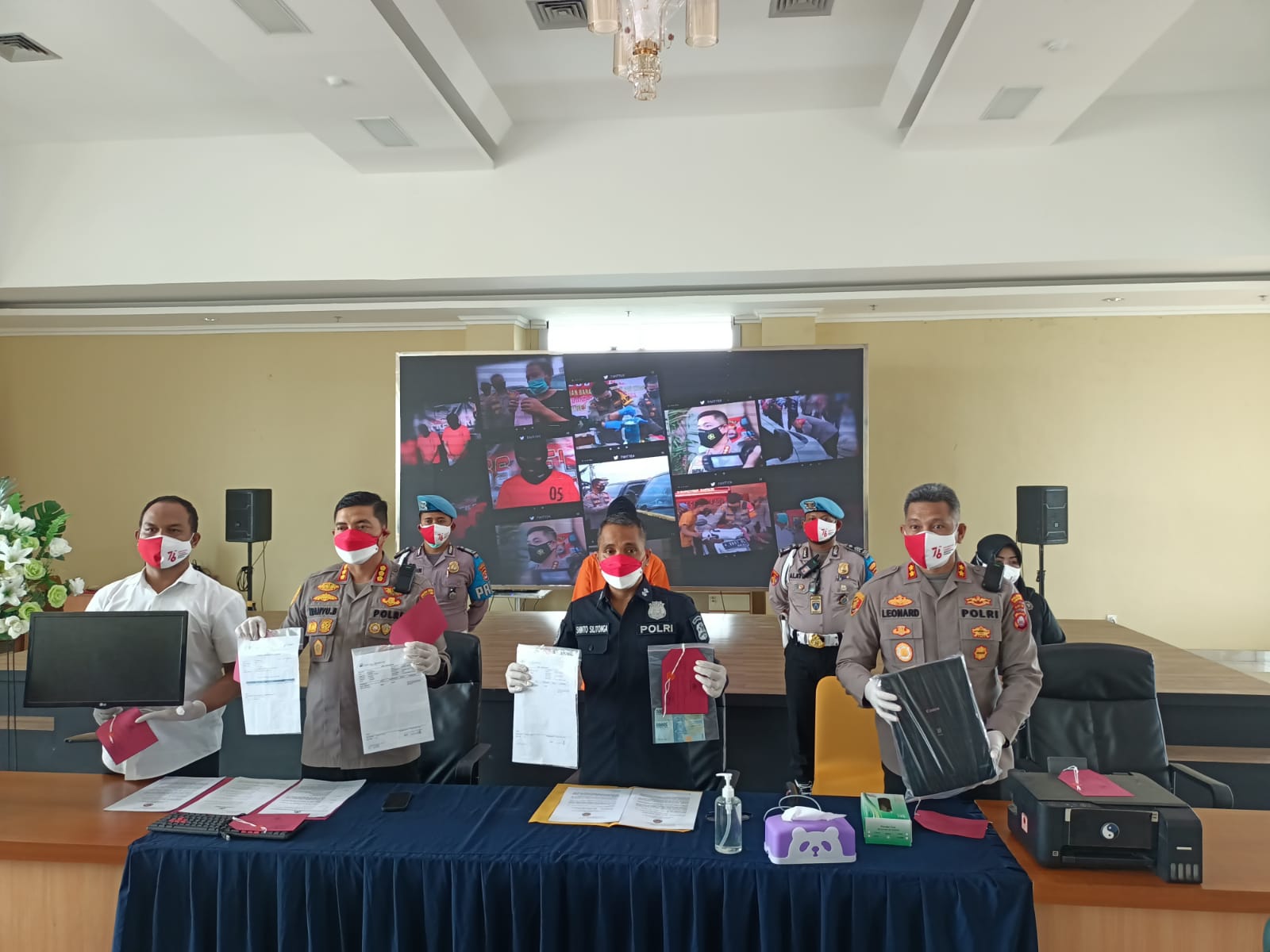 Kapolresta Tangerang menambahkan berdasarkan penangkapan tersebut, Polresta Tangerang Polda Banten telah mengamankan 1 unit CPU merek Alcatros, 1 unit monitor merek LG, 1 unit keyboard merek M-Tech, 1 unit printer merek Epson, 1 unit mesin scan merek Canoscan, 1 buah kartu vaksin asli atas nama Sri Kusmiyati, 1 lembar surat keterangan hasil swab antigen covid-19 atas nama Sri Kusmiyati, 1 lembar surat hasil swab antigen atas nama Siti Rahayu dan uang tunai sebesar Rp 100.000.