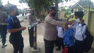 Petugas juga membagikan masker kepada masyarakat di Seputaran Jalan Imam Bonjol Labuhan Ruku Bagi yang tidak menggunakan Masker.