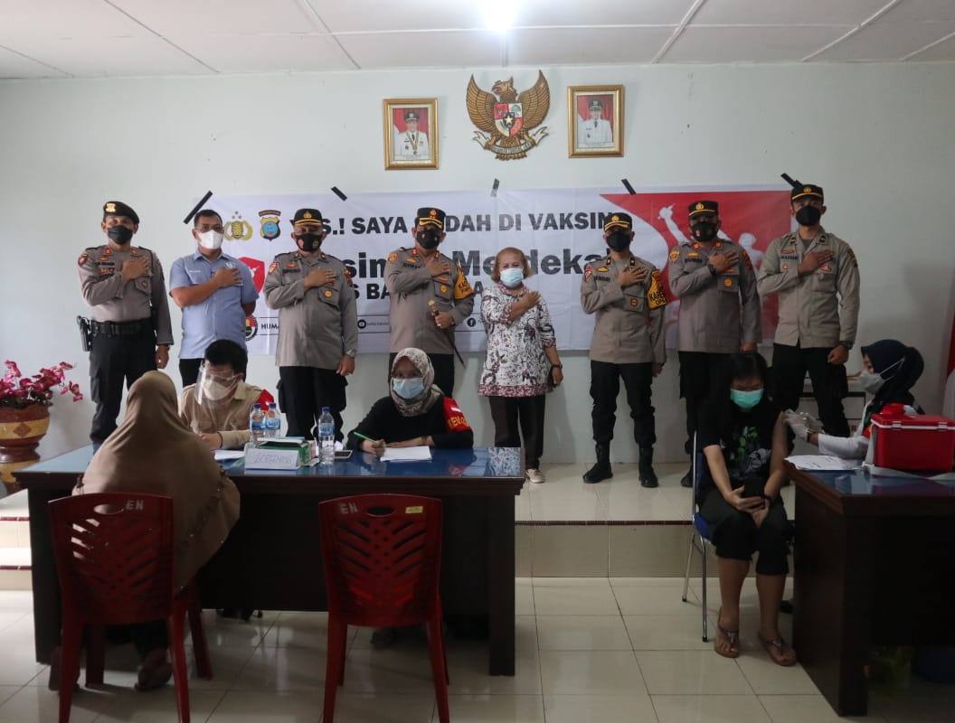 Turut hadir dalam kegiatan monitoring Vaksinasi Merdeka Polda Sumut;Kapolres Batu Bara AKBP Ikhwan Lubis, SH.,MH., Kabag Ops Polres Batu Bara KOMPOL Hendri Nupia Dinka Barus, S.H., S.I.K.,Kabag Ren Polres Batu Bara KOMPOL Diriono Sihotang, SH., MH.,Kasat Intelkam AKP Rubenta Tarigan, SH.,Kasat Sabhara AKP D. P. Sinaga, SH.,Kapolsek Lima Puluh AKP Rusdi, SH., MM.,Para Perwira Polres Batu Bara,Personil Polres Batu Bara dan Polsek Lima Puluh.