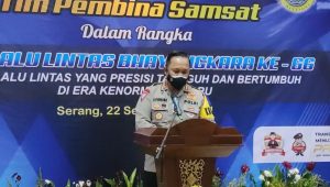 Dalam sambutannya Dirlantas Polda Banten Kombes Pol Rudy Purnomo menyampaikan bahwa Tanggal 22 September 2021 kita patut bersyukur bahwa Jajaran Polisi Lalu Lintas Polri telah memasuki usia 66 tahun, Usia yang cukup dewasa untuk mencari jati diri menjadi Polisi yang diinginkan dan dicintai oleh masyarakat