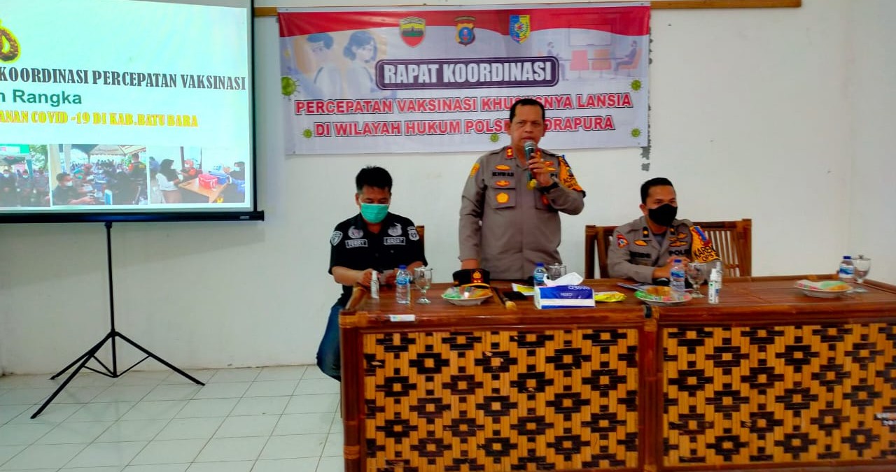 Kabarsimalungun.com. BATU BARA — Kapolres Batu Bara AKBP Ikhwan Lubis di dampingi Pejabat Utama (PJU) Polres Batu Bara kembali melaksanakan Rapat Koordinasi Percepatan Vaksinasi Khususnya Lansia (Lanjut Usia) bersama Perangkat Desa dan Dinas Kesehatan Kabupaten Batu Bara yang berada di Wilayah Hukum Polsek Medang Deras dan Polsek Indrapura.