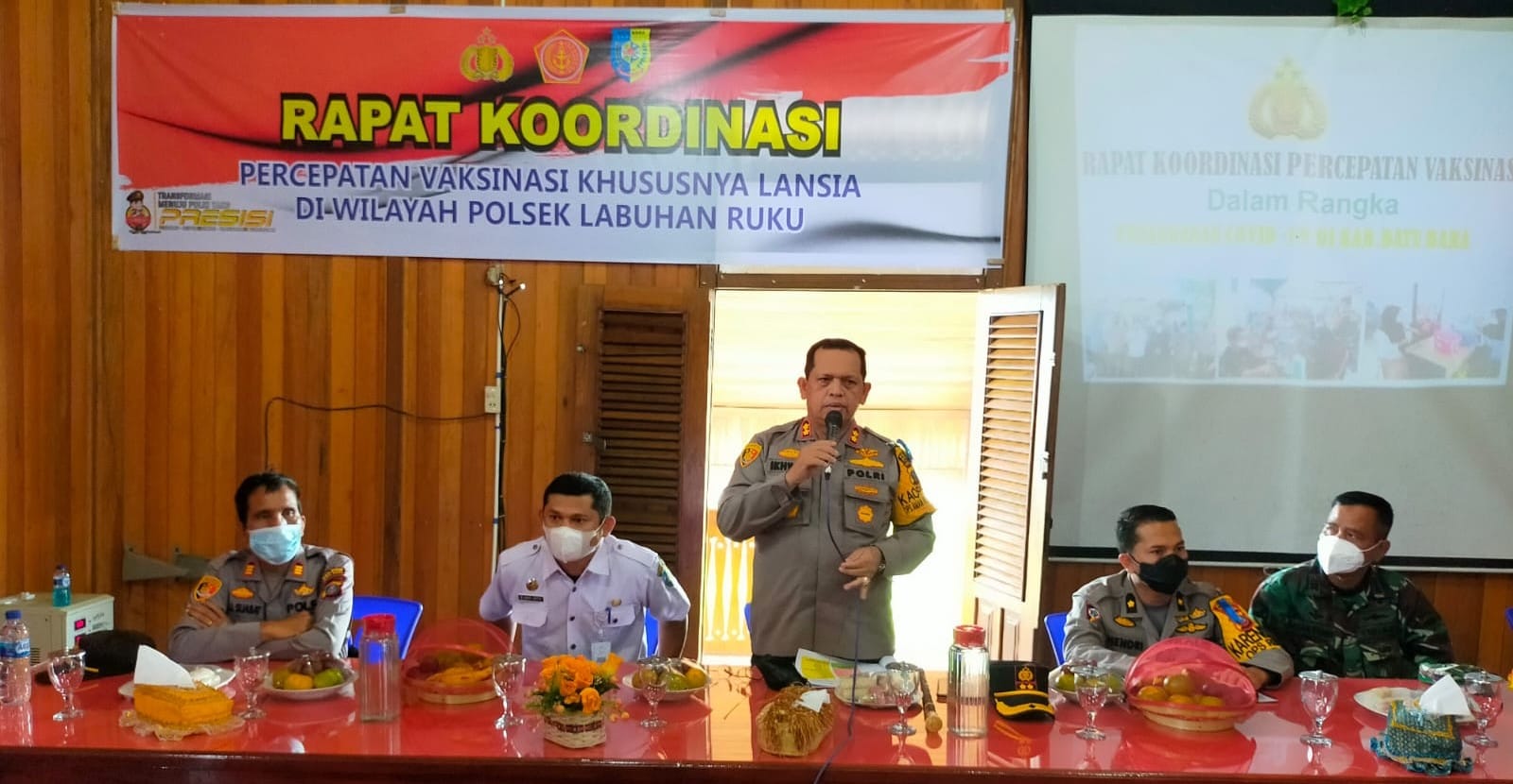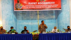 Kabarsimalungun.com. BATU BARA — Kapolres Batu Bara AKBP Ikhwan Lubis di dampingi Pejabat Utama (PJU) Polres Batu Bara melaksanakan Rapat Koordinasi Percepatan Vaksinasi Khususnya Lansia (Lanjut Usia) bersama Perangkat Desa dan Dinas Kesehatan Kabupaten Batu Bara yang berada di Wilayah Hukum Polsek Labuhan Ruku dan Polsek Lima Puluh.