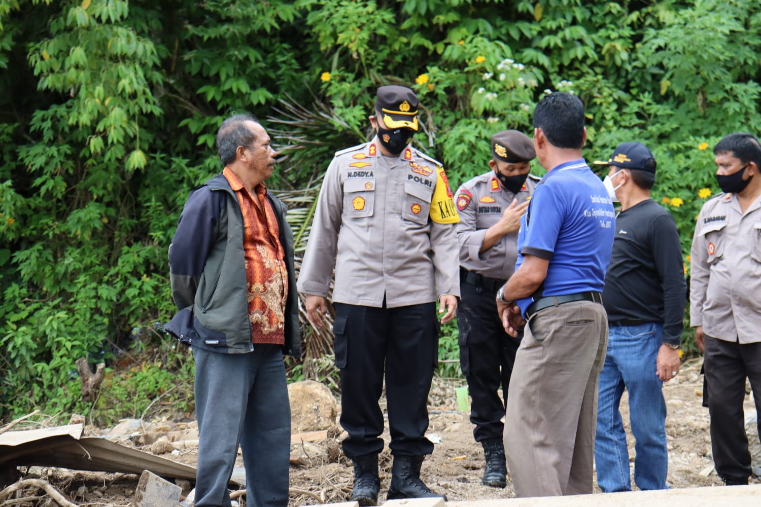 KABARSIMALUNGUN.COM, Kapolres Simalungun AKBP Nicolas Dedy Arifianto SH, SIK, MH meninjau lokasi bencana alam longsor di Dusun IV Reva Kalapa Kelurahan Sipolha Kecamatan Pamatang Sidamanik Kabupaten Simalungun, Jumat (1/10/2021) siang sekira pukul 12.30 WIB.