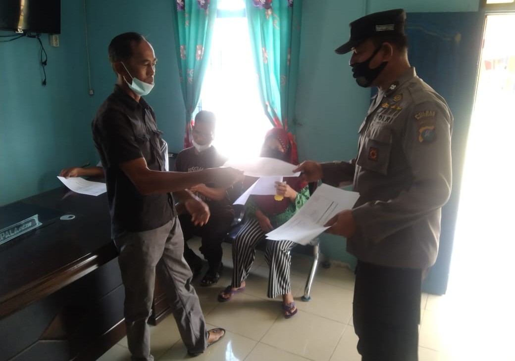 Sat Binmas Polres Batu Bara Edukasi Protokol Kesehatan Door to door di Desa Sumber Padi dan Mangkai Baru.