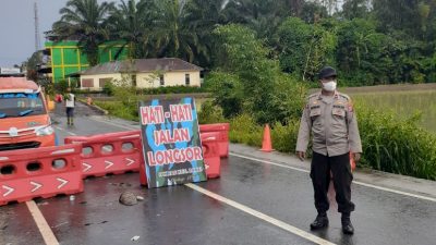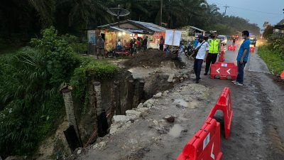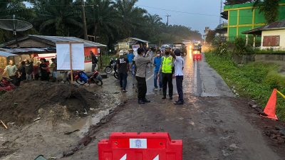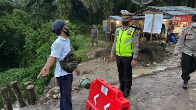 Kabarsimalungun.com. SIMALUNGUN – Kasat Lantas Polres Simalungun Sigap amankan arus lalulintas kendaraan untuk akses Siantar-Saribu Dolok yang amblas diakibatkan meningkatnya curah hujan, Nagori Marjandji Kec Panombeian Panei Kab Simalungun.(23/11).