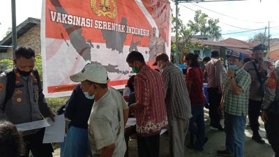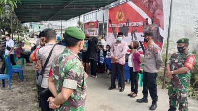 Kabarsimalungun.com. SIMALUNGUN – Kapolsek Bangun AKP L.S Gulttom SH bersama Danramil Bangun Kapt Inf P Siagian,Pangulu Nagori Siantar Estate Rusdi, Tokoh Masyarakat dan Gamot/Perangkat Nagori meninjau pelaksanaan vaksinasi massal Dosis I bertempat di Jalan umum Nagori Siantar Estate Kecamatan Siantar Kabupaten Simalungun, Kamis (2/12/2021).