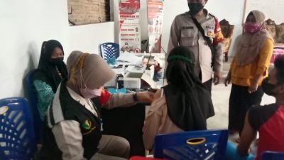POLSEK BANGUN VAKSINASI DI KANTOR PANGULU NAGORI KARANG REJO DEMI TARGET CAPAI 70 PERSEN.