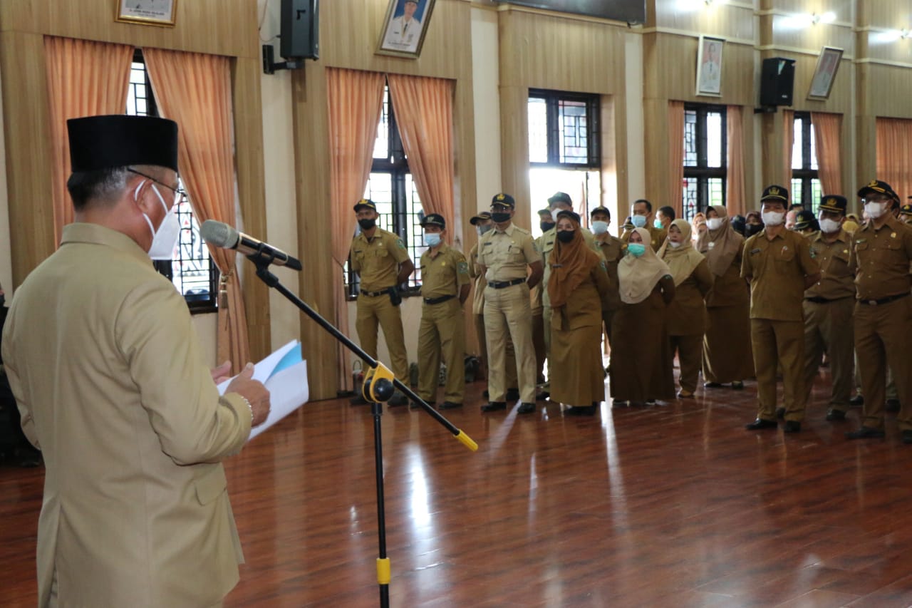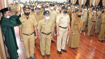 Bupati Simalungun dalam sambutan tertulisnya yang dibacakan Sekda Esron Sinaga mengatakan, pelantikan dan pengangkatan sumpah janji pegawai negeri sipil (PNS) dari jabatan pengawas ke dalam jabatan fungsional ahli muda di lingkungan Pemkab Simalungun tahun 2021 melalui penyetaraan jabatan.