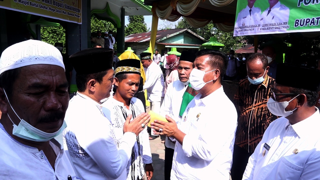 Kabarsimalungun.com. SIMALUNGUN – Bupati Simalungun Radiapoh Hasiholan Sinaga SH MH bersama Wakil Bupati Simalungun H Zonny Waldi S.Sos, MM menghadiri Safari Jumat Forum Silahtuhrahmi Ormas Islam, di Masjid Baitul Gofur Nagori Naga Jaya 1 kecamatan Bandar Huluan Kabupaten Simalungun, Sumut, Jum’at (28/1/2022).