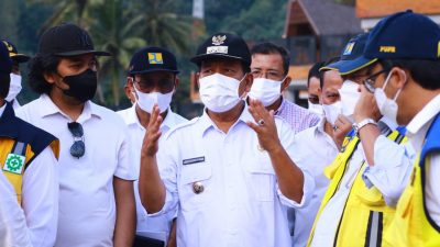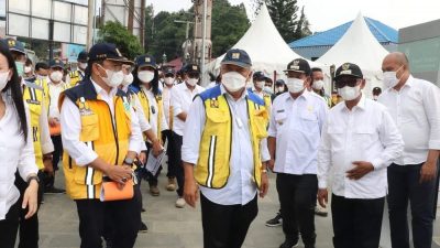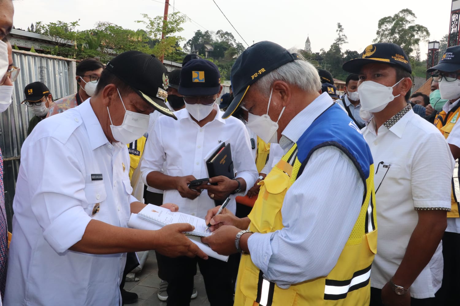 Kabarsimalungun.com. SIMALUNGUN – Bupati Simalungun Radiapoh Hasiholan Sinaga SH MH di dampingi Wakil Bupati H Zonny Waldi.S.sos.MM menyambut kedatangan Menteri PUPR Basuki Hadimuljono di Kota Wisata Parapat Kecamatan Girsang Sipangan Bolon Kebupaten Simalungun, Sumut, Selasa (1/2/2022).