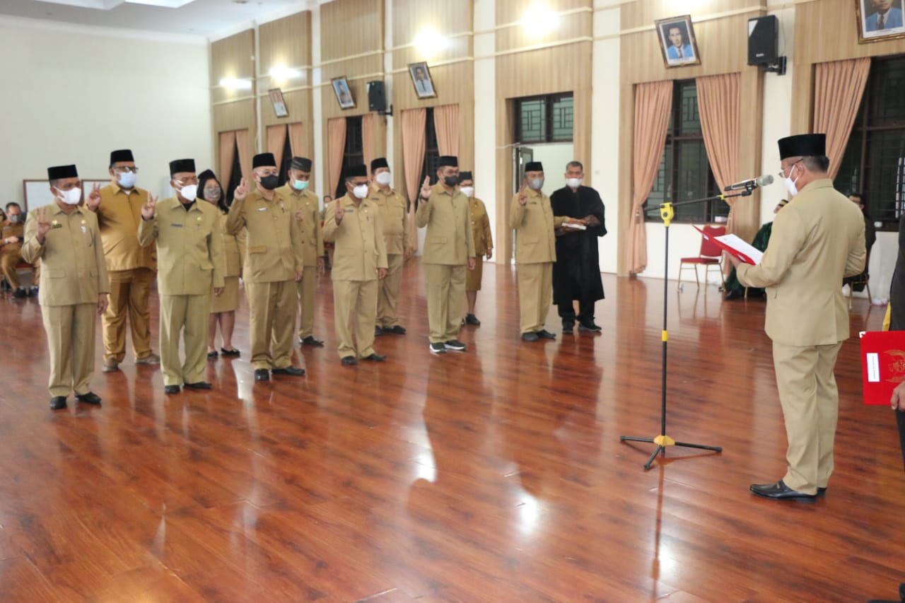 Kabarsimalungun.com. SIMALUNGUN – Bupati Simalungun Radiapoh Hasiholan Sinaga SH MH diwakili Sekretaris Daerah (Sekda) Drs Esron Sinaga MSi melantik 11 orang pejabat Administrator di Jajaran Pemkab Simalungun, di Balai Harungguan Kantor Bupati Simalungun, Pamatang Raya, Sumut, (4/2/2022).