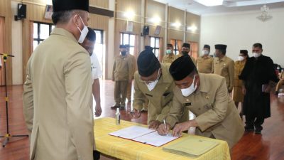Para pejabat yang dilantik tersebut juga melakukan penandatanganan fakta integritas yang disaksikan oleh masing-masing pimpinan OPD tempatnya bertugas.