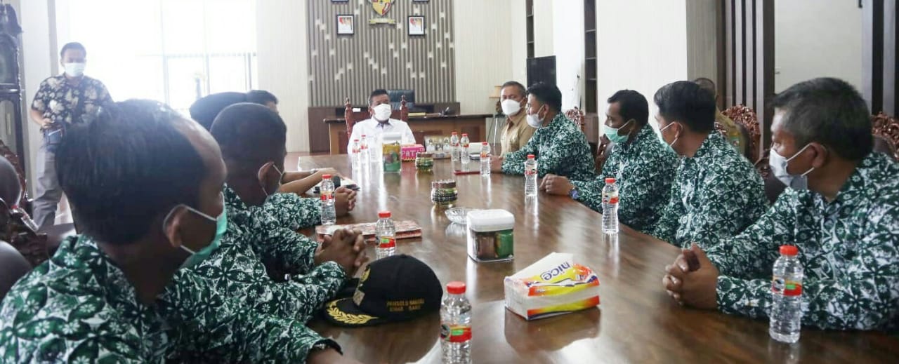 Kabarsimalungun.com. SIMALUNGUN – Bupati Simalungun Radiapoh Hasiholan Sinaga SH MH di dampingi Wakil Bupati H Zonny Waldi dan Sekda Erson Sinaga dan Kaban Kesbangpol Arifin Nainggolan serta Kadis PNPM Jonni Saragih menerima audensi Perkumpulan Aparatur Pemerintahan Desa Seluruh Indonesia (PAPDESI) Kabupaten Simalungun di ruang kerja Bupati Simalungun, Pamatang Raya, Sumut, Selasa (15/2/2022).