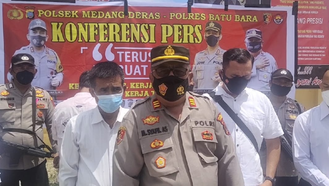 Kapolsek Medang Deras AKP M Syafi’i didampingi Kanit reskrim Iptu AH Sagala dan Kasi Penmas Polres Batu Bara Iptu Fahmi  menjelaskan kepada wartawan Senin 21/2/2022 di mapolsek Medang Deras, bahwa kawanan pelaku pencurian disertai penganiayaan tersebut ditangkap setelah sempat buron selama Dua hari.