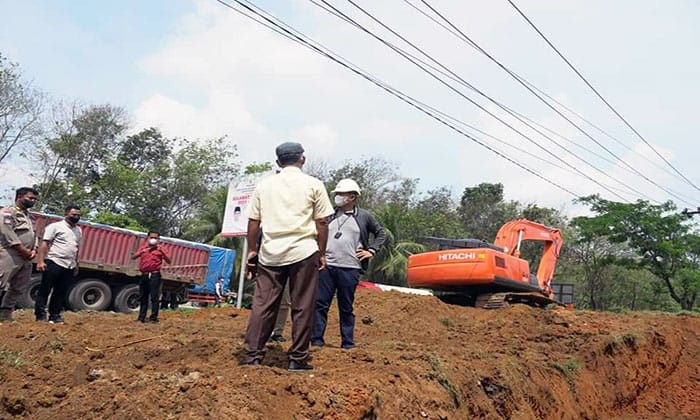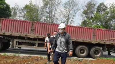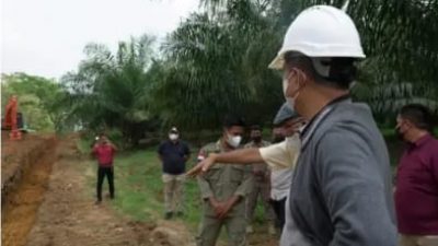 Bupati Batu Bara Ir Zahir menemui sejumlah pekerja pematangan badan jalan. Sejumlah alat berat excavator tampak masih beraktivitas melakukan pengerukan serta membersihkan areal eks perkebunan karet.