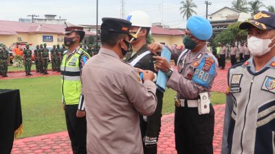 Apel Gelar pasukan Polres Batu Bara yang bertemakan meningkatkan kepatuhan dan disiplin masyarakat dalam berlalu lintas dan tetap mematuhi Protokol Kesehatan dimasa pandemi Covid-19 diwilayah Kabupaten Batu Bara, dipimpin langsung Waka Polres Batu Bara Kompol Rudy.