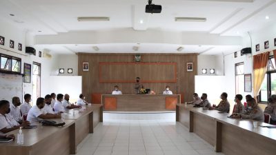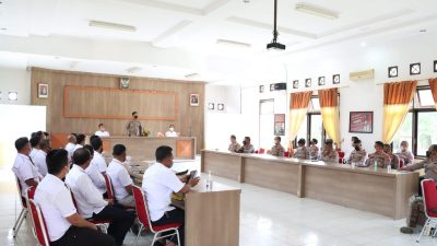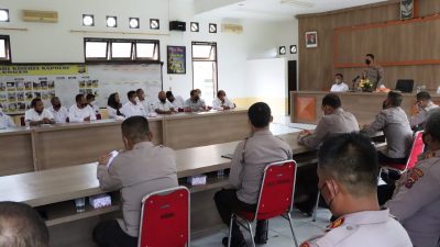 Kata Kapolres,”Salam Presisi dengan melekatkan tangan didada merupakan bentuk kesiapan kita dalam memberikan pelayanan bagi masyarakat, untuk itu melalui anev ini mari kita satukan visi dan misi untuk tetap memberikan pelayanan yang terbaik dan humanis kepada masyarakat”.