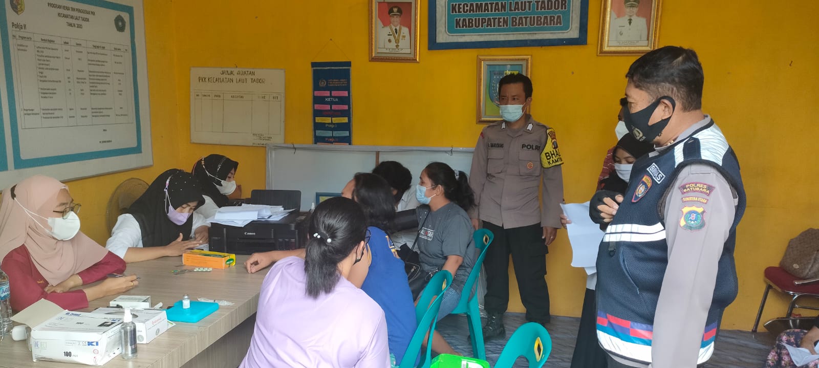 Hal ini terlihat totalitas Personil Polsek Indrapura,Polres Batu Bara,Polda Sumut, dalam percepatan vaksinasi seperti yang terlihat di Kantor Camat Laut Tador Kabupaten Batu Bara, Rabu (09/03/2022).