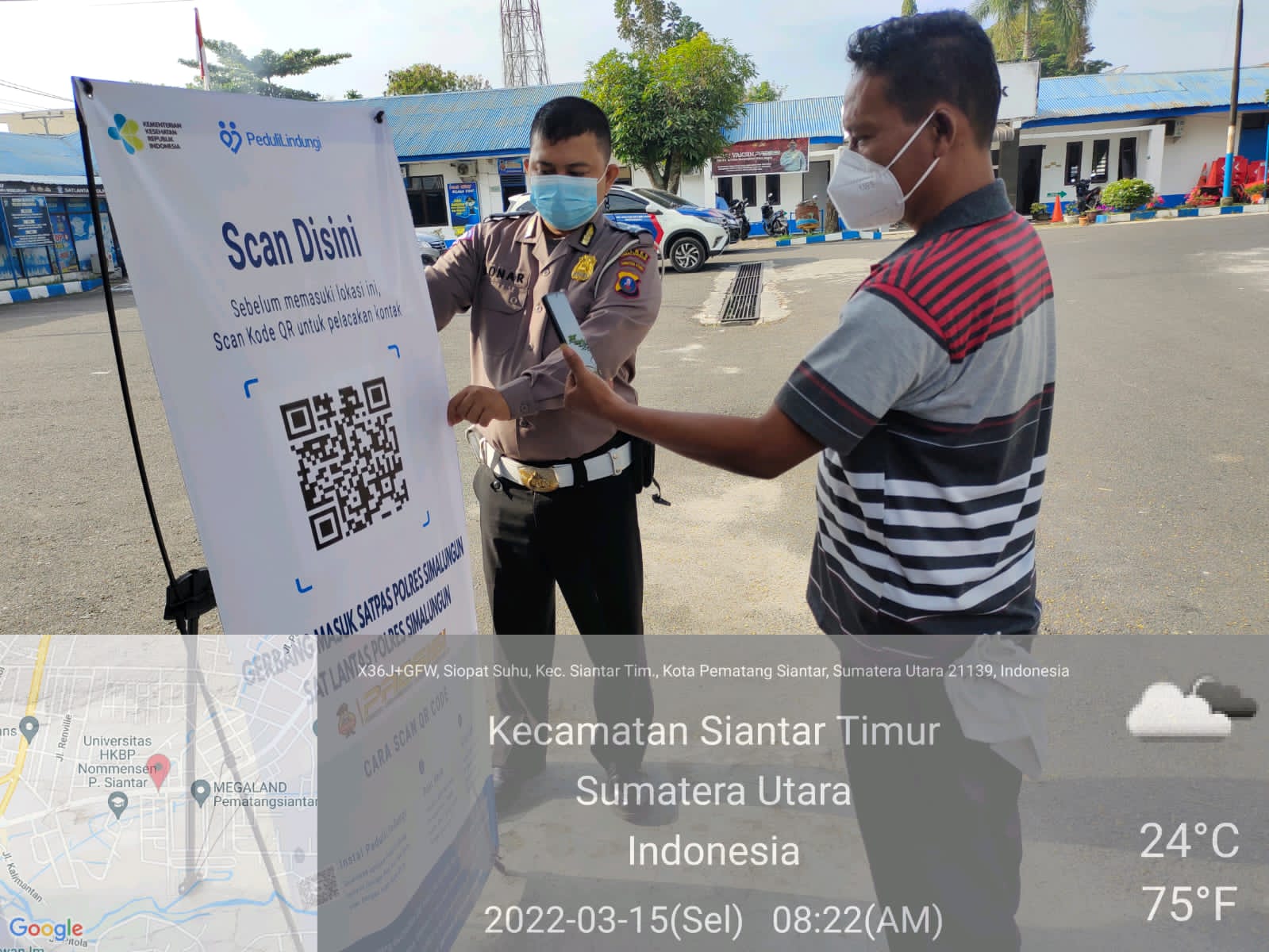 Satlantas Polres Simalungun dalam mengemplementasi kepada pemohon SIM atau pengunjung/tamu yang memasuki kantor SATPAS Polres Simalungun oleh petugas untuk melaksanakan Scan Barcode PeduliLindungi sehingga para pemohon SIM akan diketahui lokasi yang dikunjungi dan riwayat kontak penderita COVID-19 dapat dilakukan.