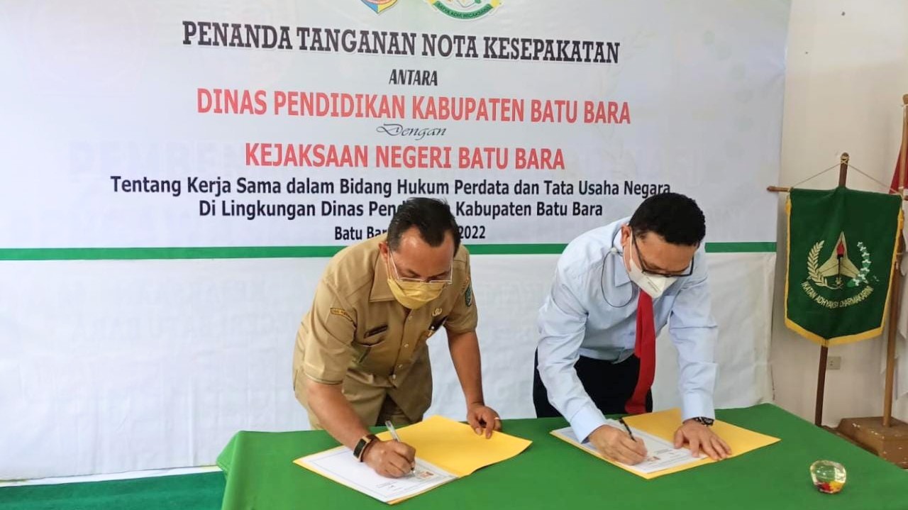 Kabarsimalungun.com. BATU BARA — Dinas Pendidikan sudah memiliki landasan untuk koordinasi dan bersinergitas dalam rangka penanganan masalah hukum di bidang Perdata dan Tata Usaha Negara dengan Kejaksanaan Negeri Batu Bara. Perjanjian Kerjasama di bidang Keperdataan dan Ketatausahanegaraan yang meliputi,Bantuan Hukum, Pertimbangan Hukum, dan Tindakan Hukum lainnya.