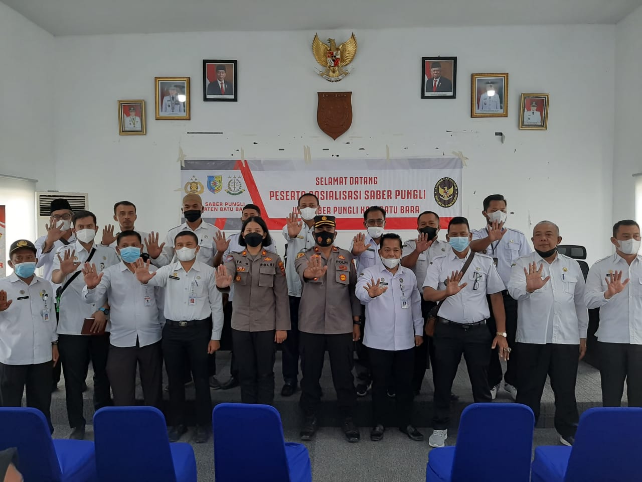 Kabarsimalungun.com. BATU BARA — Polres Batu Bara melaksanakan kegiatan Sosialisasi Sapu Bersih Pungutan Liar atau yang biasa dikenal dengan Saber Pungli di aula dinas Bupati Batu Bara,Tanjung Gading, Kecamatan Sei Suka,Batu Bara,Sumut, Rabu (30/03/2022).