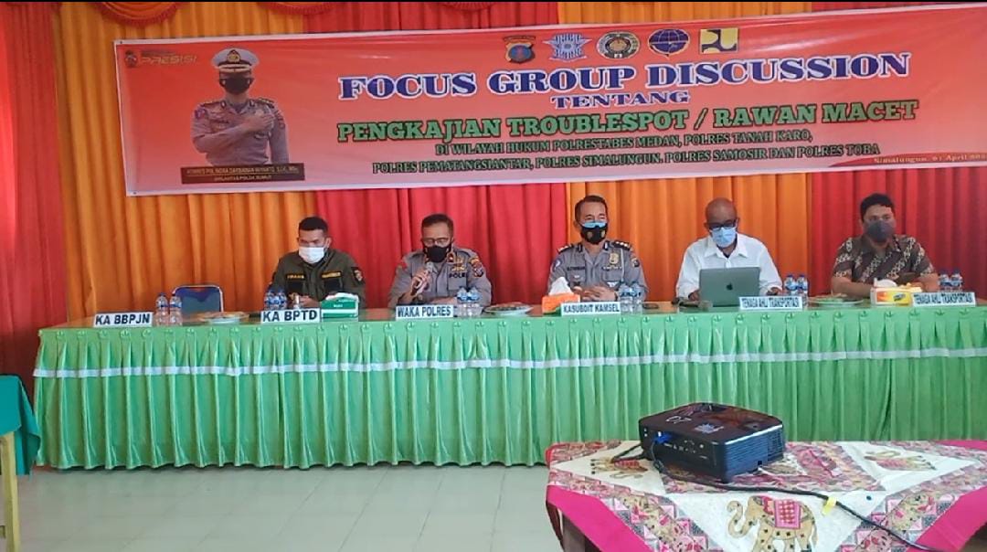 Kapolres Simalungun Akbp Dedy Nicolas Arifianto, SH, SIK, MH melalui Kasat Lantas Polres Simalungun Akp Hendrik F Aritonang, SIK, MH menerangkan kegiatan FGD Trouble Spot dilaksanakan untuk mencari solusi penanganan rawan kemacetan yang ada di 6(enam) Polresta/Polres, dengan didahului survey dan kajian yang dilakukan oleh Subdit Kamsel Dirlantas Polda Sumut bekerja sama dengan tenaga ahli transportasi dari BPTD dan Universitas Sumatera Utara.