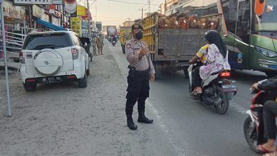 Kabarsimalungun.com. BATU BARA — Satuan Samapta Polres Batu Bara bersama Polsek jajarannya, mengawal dan mengamankan kegiatan masyarakat di Pasar (Pajak/Pekan) Tumpah,seperti terlihat suasana Pasar Tumpah Tanjung Tiram, di Jalan Merdeka Tanjung Tiram Kecamatan Tanjung Tiram, Kabupaten Batu Bara,Sumut, Selasa (19/04/2022).