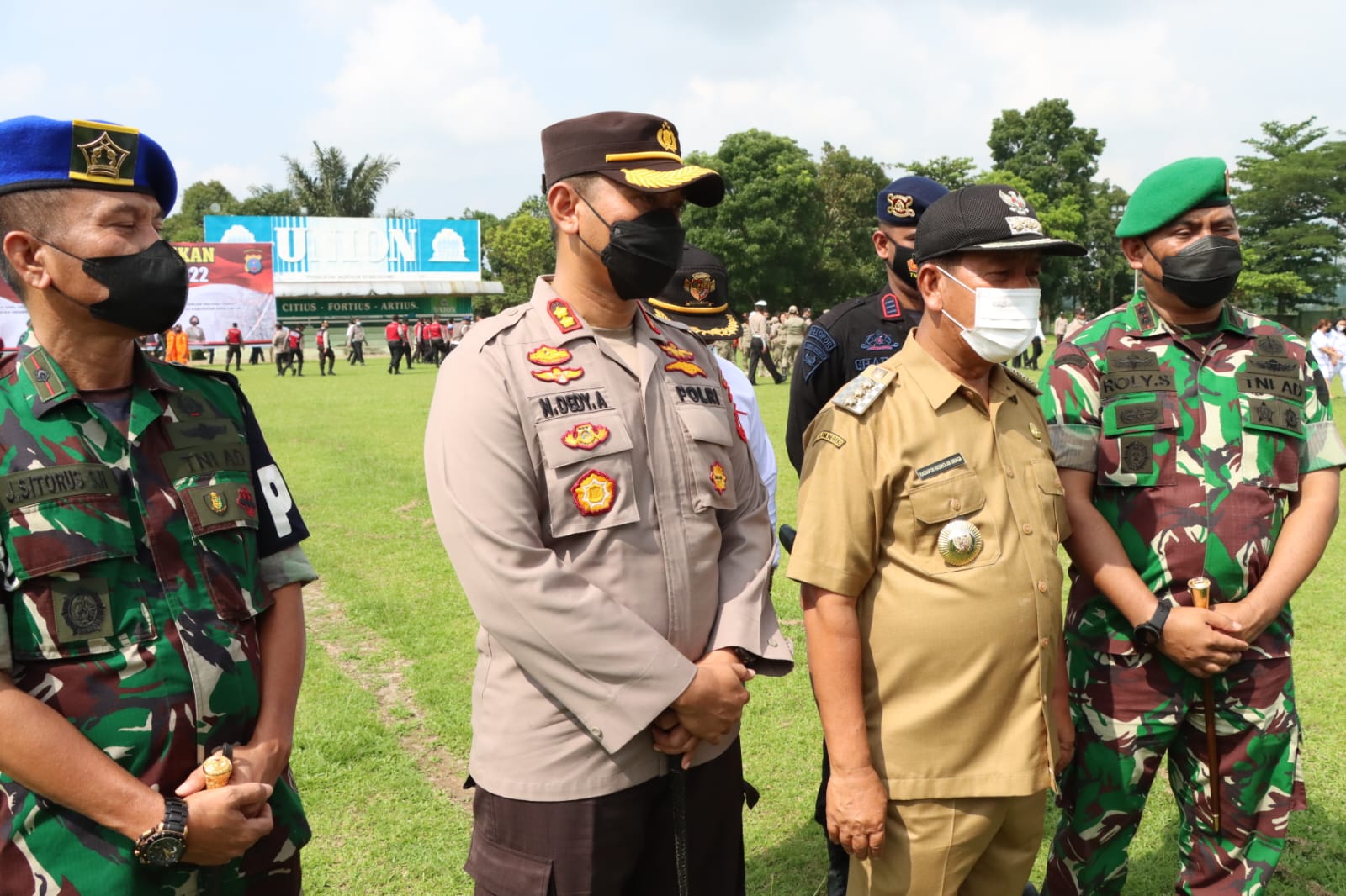 Selanjutnya Bupati Radiapoh Hasiholan Sinaga membacakan amanat tertulis Kapolri Jenderal Polisi Listyo Sigit Prabowo yang menyatakan Apel Gelar Pasukan Operasi “Ketupat-2022” diselenggarakan secara serentak di seluruh Jajaran Polri Dengan Tema “Wujud Sinergi Polri Dengan Instansi Terkait Untuk Menjamin Masyarakat Aman dan Sehat Dalam Perayaan Idul Fitri 1443 H/2022″.