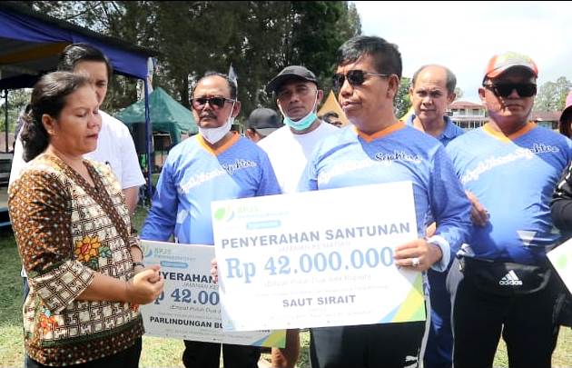 Di kegiatan itu, Bupati Simalungun yang juga dampingi Wakil Bupati H Zonny Waldi Dan Ketua DPRD Timbul Jaya Sibarani menyerakan Santun BPJS Ketenagakerjaan Kepada ahlibwaris yang di tinggalkan sebesar Rp 42 juta. “Ini bentuk Pemerintah dalam Memprotek Masyakatnya,”jelas Bupati.