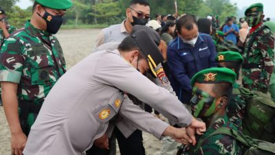 Kabarsimalungun.com ||| BATU BARA — Kapolres Batu Bara AKBP Jose DC Fernandes hadiri upacara penutupan Latihan Yudhawastu Pramuka dan tradisi Pembaretan Prajurit Infanteri Pendidikan Kejuruan Bintara Infanteri Abituren Pendidikan Pertama Bintara TNI AD TA 2021 yang diikuti 96 prajurit,di Pantai Sujono Dusun Mesjid Desa Lalang Kecamatan Medang Deras Kabupaten Batu Bara, Kamis (2/6/22).