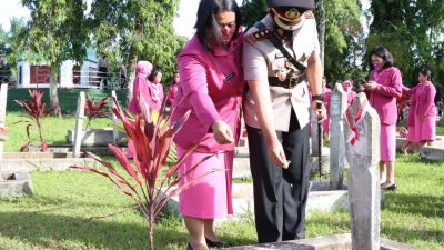 Ziarah itu turut diikuti Kapolres Simalungun Akbp Nicolas Dedy Arifianto, S.H., S.I.K., M.H., Ketua Bhayangkari Cabang Simalungun Ny.Dona Dedy., bersama Pengurus, Kapolres Pematangsiantar Akbp Fernando, S.I.K., S.H., Kabag Sumda Polres Simalungun Kompol Joner Purba., DANKI 2 YON B BRIMOB Pematangsiantar Akp Ghofur Hidayat, S.I.K., Kasat Narkoba Polres Simalungun Akp Adi Haryono, SH., Kasat Samapta Polres Simalungun Akp P. Butar-butar, SH., Kasipropam Polres Simalungun Iptu B.Tobing., Para PJU Polres Simalungun dan Pematangsiantar., PA, BA, PNS Polres Simalungun dan Pematangsiantar.( SGN )