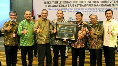 Penghargaan itu diserahkan langsung oleh Deputi Direktur Wilayah BPJS Ketenagakerjaan Wilayah Sumbagut Panji Wibisana dalam rapat koordinasi bersama DPRD dan Pemerintah Daerah terkait dengan implementasi intruksi Presiden RI No. 2 tahun 2021 diwilayah kerja BPJS Ketenagakerjaan Kantor Wilayah Sumatera Bagian Utara (Sumbagut), di Hotel Santika Premiere Dyandra Hotel dan Convention Medan, Senin (4/7/2022).
