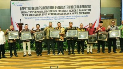 Menyinggung pelaksanan rapat koordinasi implementasi Inpres No 2 tahun 2021, Bupati berharap dapat menyamakan pandangan di wilayah masing-masing melalui kebijakan-kebijakan yang konkrit dan nyata sehingga perlindungan melalui jamsos ketenagakerjaan dirasakan manfaatnya oleh seluruh warga.