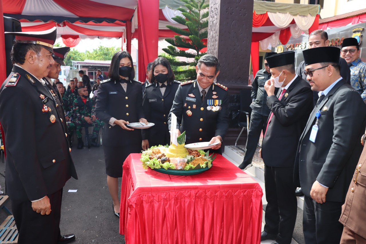 Syukuran Hari Bhayangkara Ke-76 Tahun 2022 dilaksanakan Polres Batu Bara dengan Tema ; “Transformasi Polri yang Presisi Mendukung Pemulihan Ekonomi dan Repormasi Struktural Untuk Mewujudkan lndonesia Tangguh-lndonesia Tambuh.”
