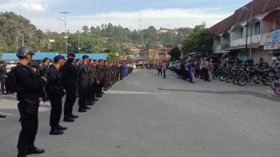 Para personil yang terdiri dari Brimob, Polair, Samapta dan personil Polres Simalungun diberi Arahan guna pengamanan rangkaian kegiatan W-20