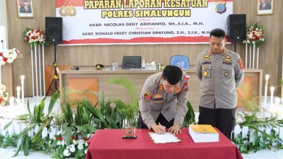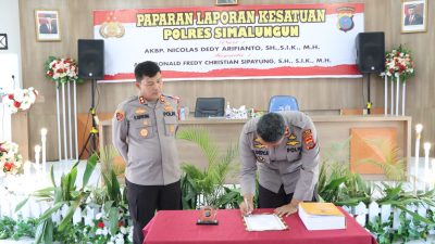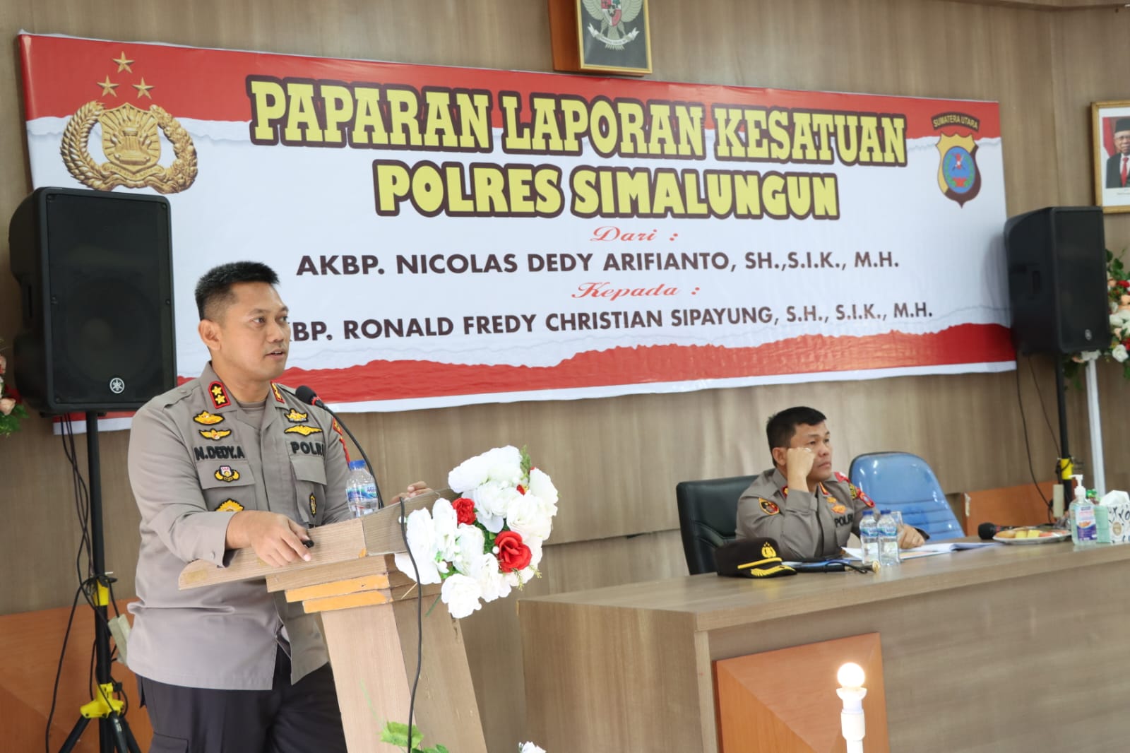 Hadir dalam giat Laporan kesatuan Wakapolres , para pejabat utama polres dan para Kapolsek jajaran Polres Simalungun. Selain keberhasilan, juga memberikan gambaran mengenai permasalahan yang menjadi perhatian Kapolres Simalungun yang baru nanti. Akbp Nicolas Dedy Arifianto, S.H., S.I.K., M.H., menyampaikan kepada Kapolres Simalungun yang baru, dinamika operasional, dan inovasi kreatif dalam memberikan pelayanan prima kepada masyarakat.