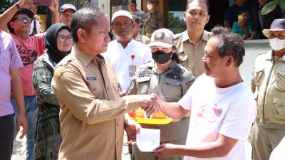 Penyerahan dana kompensasi / ganti rugi diberikan kepada 20 KK pemilik keramba sekaligus pembongkaran 261 keramba jaring apung di Huta Sualan Nagori Sibaganding Kecamatan Girsang Sipangan Bolon Kabupaten Simalungun.