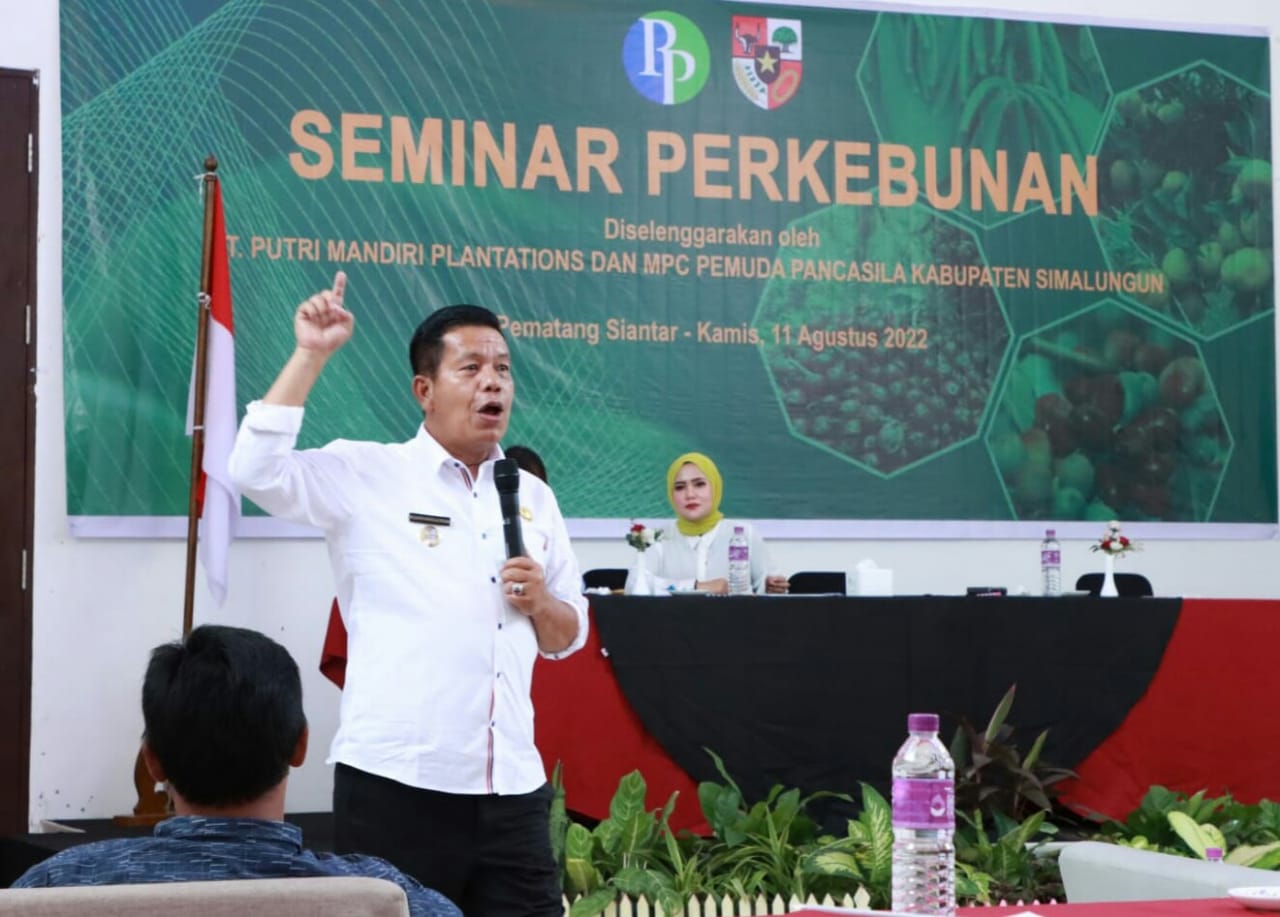 Kabarsimalungun.com ||| SIMALUNGUN – Bupati Simalungun Radiapoh Hasiholan Sinaga SH MH meghadiri Seminar Perkebunan yang di selenggarakan PT Putri Mandiri Plantations dan MPC Pemuda Pancasila Kabupaten Simalungun, di Sapadia Hotel Pematang Siantar, Kamis (11/8/2022)