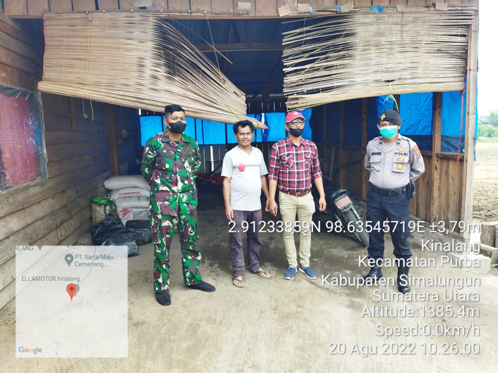 Tampak hadir Kapolsek Purba AKP Marolop Sinaga bersama Kanit Reskrim Ipda Bernad Napitupulu, Babinsa Koramil 13/Purba Sertu M. Siregar dan anggota polsek Purba saat melaksanakan kegiatan Patroli dan pengecekan perihal adanya berita online tersebut ke Nagori Hinalang Kecamatan Purba Kabupaten Simalungun……( SGN )