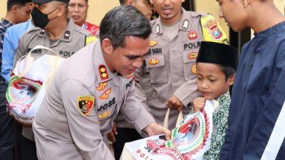 Usai melaksanakan Kegiatan Pengukuhan Kapolres Batu Bara AKBP Jose DC Fernandes SIK,juga memberikan bantuan dan tali asih kepada anak yatim piatu.
