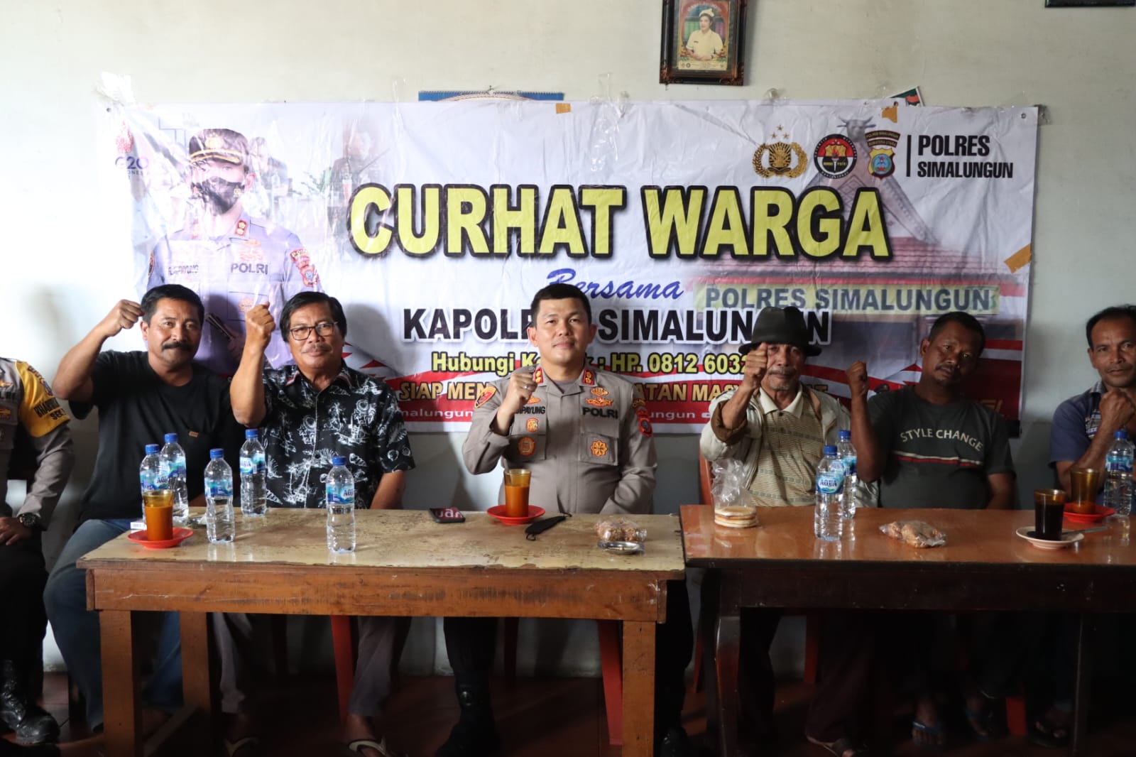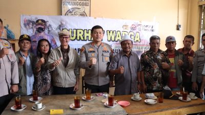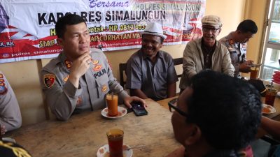 Kunjungan yang pertama Kapolres Simalungun AKBP Ronald F.C Sipayung, S.H., S.I.K., M.H., mendengarkan curhatan warga di Warung Kopi Simanggoki, Pasar Pekan Raya Kecamatan Purba, Jalan Lintas Saribudolok dengan dilanjukan di Warung Kopi Pak Bonar Kelurahan Tiga Runggu Kabupaten Simalungun.