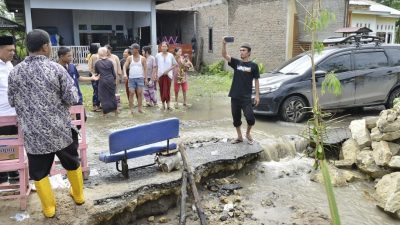 “Ternyata sungai mengalami tumpat karena ada masyarakat yang memiliki perkebunan dan menutup alur sungai, nah ini yang harus kita jebol dan lakukan normalisasi. Akibat tanggul yang jebol ada masyarakat yang rumahnya terdampak langsung dan harus diungsikan terlebih dahulu,” ungkap Bupati Zahir.