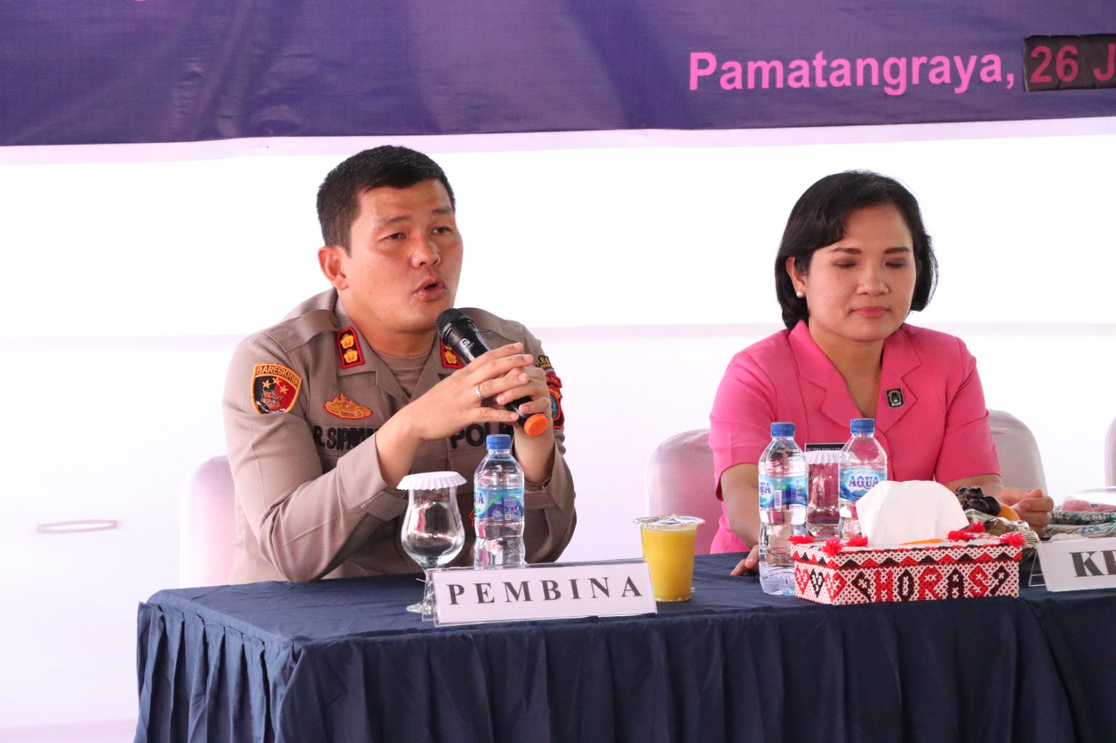 Kapolres Simalungun dalam arahannya menyampaikan bahwa Ibu-ibu Bhayangkari harus dapat mendukung kinerja para suaminya dalam memberikan pelayanan yang terbaik, “Sebagaii Istri dari seorang Polisi Ibu-ibu sekalian harus bisa mendukung kinerja para Suami agar dapat melaksanakan tugas dengan baik dalam memberikan pelayanan kepada masyarakat,” Ucap AKBP Ronald.