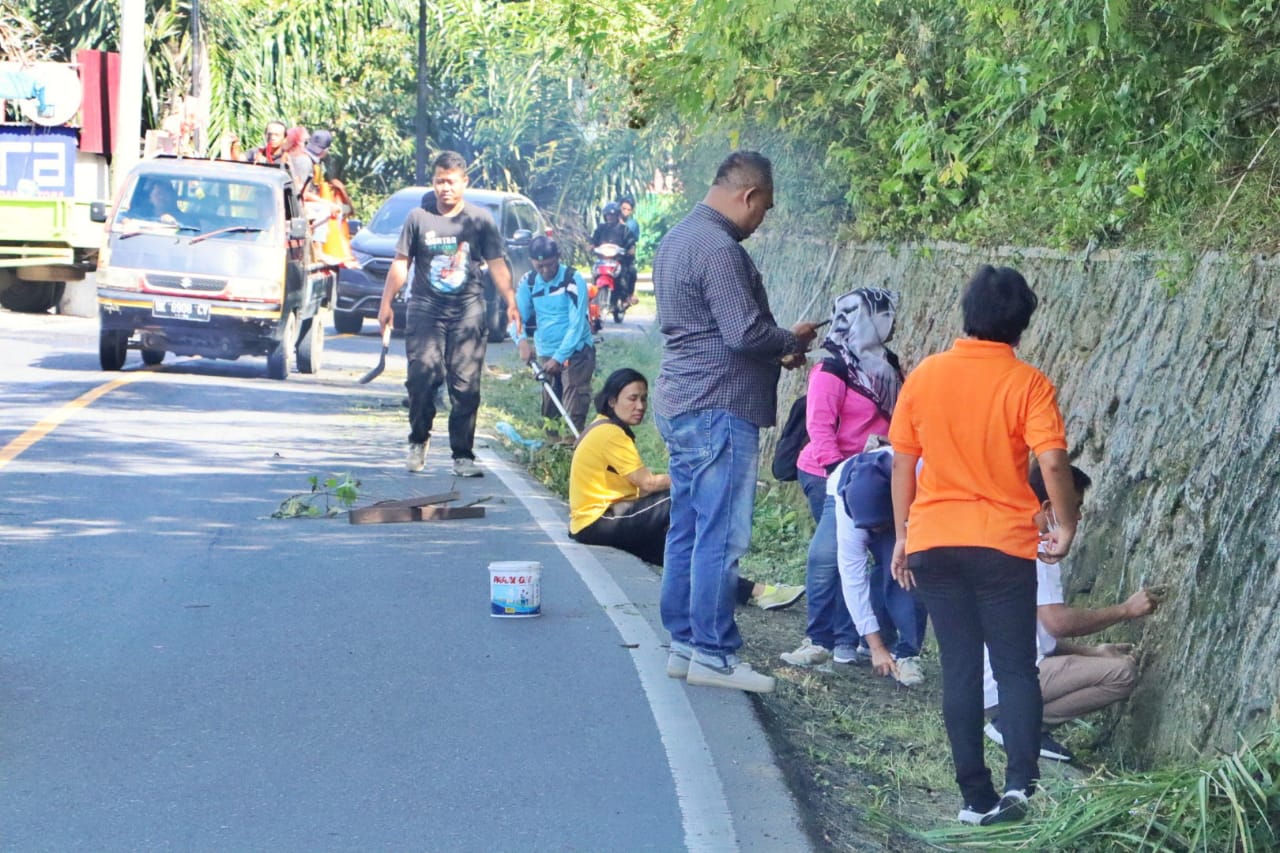 Di kegiatan gotong royong itu, para terlihat para ASN melakukan pembersihan beram dan tebing jalan menuju kota Wisata Parapat, di mulai dari simpang Hotel Pratrajasa hingga Jembatan Sera-sera dan di bagi dalam 32 titik lokasi.