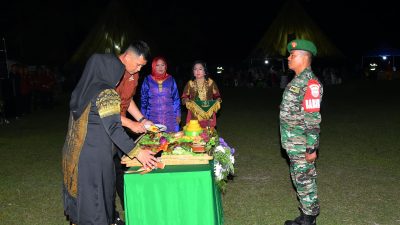 Acara malam panggung prajurit dilanjutkan dengan pemotongan nasi tumpeng oleh Dandim 0208/AS dan Ketua Persit KCK Dim 0208/AS yang diberikan kepada Babinsa berprestasi Sertu Muhammad Khaidir. (aa-red)