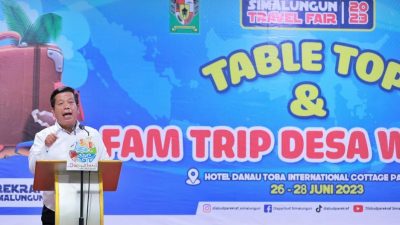 Kabarsimalungun.com || SIMALUNGUN – Bupati Simalungun Radiapoh Hasiholan Sinaga melakukan launching Simalungun Travel Fair, Table Top dan Fam Trip Desa Wisata di Hotel Danau Toba Internasional Parapat, Kecamatan Girsang Sipangan Bolon, Simalungun, Sumut, Senin, (26/6/2023).